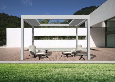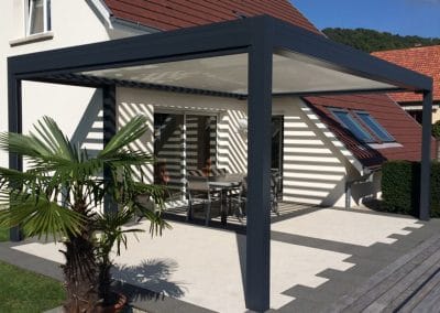Nos pergolas bénéficient d’une structure en aluminium extrudé et d’un assemblage sans vis apparente. Pour une meilleure durabilité, elles sont recouvertes d’une peinture thermolaquée qui résiste aux intempéries. Les mécanismes sont silencieux et invisibles.