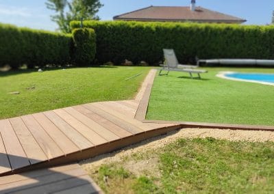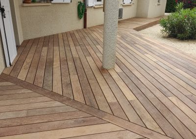 Les essences de bois disponibles permettent de jouer sur les couleurs et l’aspect de la terrasse avec des veines de bois plus ou moins apparentes selon le bois choisi.
